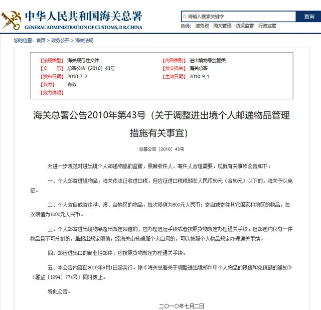 4.包裹價(jià)值限制:個(gè)人寄自港、澳、臺(tái)地區(qū)的物品,單個(gè)包裹限值為 800 元人民幣。但郵件內(nèi)單一不可分割的,超出限值的也可以按個(gè)人物品規(guī)定通關(guān)。